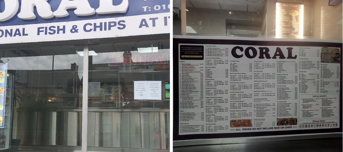 Coral Fish & Chip & Chinese Takeaway accepts cash only, so be sure to have some on hand when visiting.