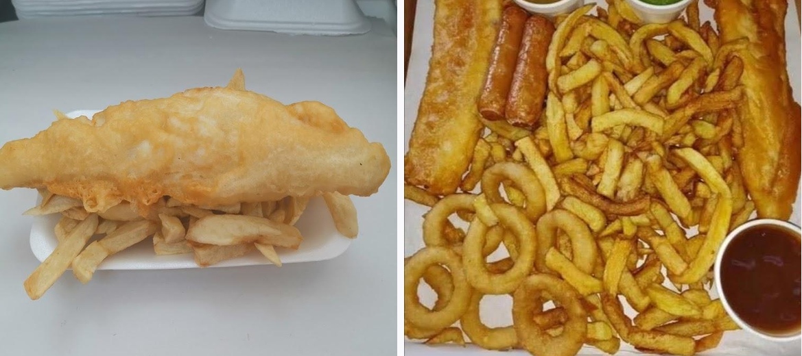 The shop was clean and efficiently run with excellent customer service. We order 2 cod and a large chips (massive portion). The fish was flaky and fresh, and the batter was crispy and light. Overall amazing experience, would definitely recommend.